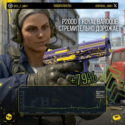 Вслед за M4A4 дорожает и P2000 🤔 P2000 | Королевское барокко (FN) просто летит и, похоже, останавливаться не собирается 😘 С 1 марта прирост уже составил 79% 💰 Админ тихо завидует тем, кто успел