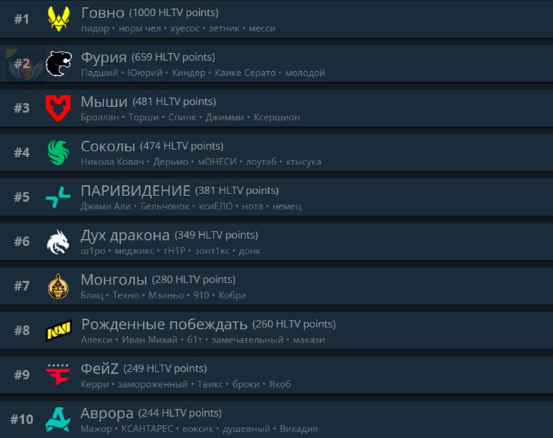 ⚡️⚡️В РОССИИ БЫЛ ПРИНЯТ ЗАКОН ЗАПРЕЩАЮЩИЙ ИСПОЛЬЗОВАНИЕ АНГЛИЦИЗМОВ! Поэтому, представляем вам, как бы выглядели команды, и их никнеймы без английских букв 👍 @csgo4love