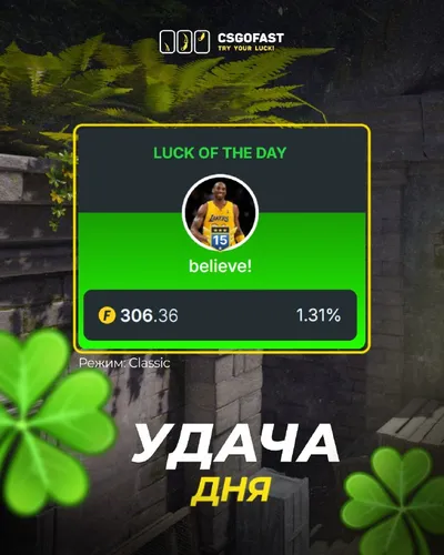 🍀 Удача дня подъехала Пользователь believe! забрал сегодня 🪙 306 в режиме Classic при шансе всего 1,31%. Твоя очередь тоже где-то рядом… главное не пропустить момент 😏 👉 Залетай в Classic 🫥 П