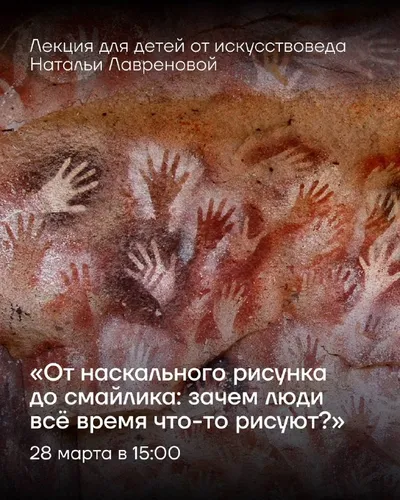 Почему люди рисовали на стенах пещер тысячи лет назад и как это связано с современными эмодзи? 28 марта в арт-пространстве «КУБ» пройдёт детская интерактивная лекция «От наскального рисунка до смайли
