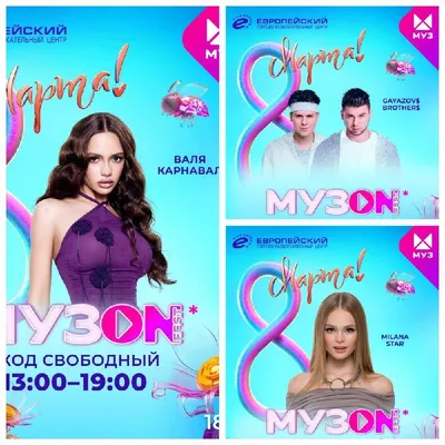 💖🌸 Milana Star, GAYAZOV$ BROTHER$, Валя Карнавал выступят на бесплатном большом концерте МУЗОN FEST в ТРЦ «Европейский» Для вас исполнят свои лучшие хиты: Milana Star, Артём Качер, группа «Блестящ