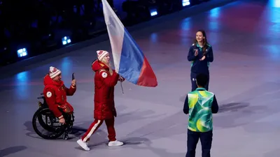 🏅Российские спортсмены прошли с флагом страны на церемонии закрытия Паралимпиады в Италии ❗️Торжественная церемония проходит в Кортина‑д’Ампеццо на «Стадио олимпико дель гьяччо». Российский флаг про