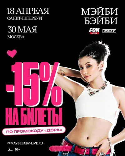 у меня новость!! ждите меня на концертах моей любимой Мэйби Бэйби в Москве и Питере 🤍 Питер - А2 - 18 апреля Москва - VK Stadium - 30 мая maybebaby-live.ru/ по промокоду «дора» скидка 15% до 1 ап