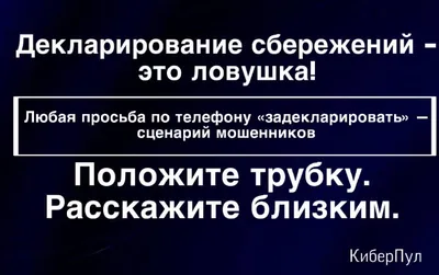 ⚡⚡⚡Это должен знать каждый: основные «работающие» легенды кибермошенников прямо сейчас 🥷«Декларирование» денег после отмены якобы незаконных банковских переводов от Вашего имени. 🥷Перевод денег н