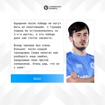 «Это не просто победа. Это глоток свежести и ощущение чемпионства вновь!», — слова нашего легендарного кэпа 😎 dazz. Продолжаем тренироваться и готовиться к следующим выступлениям. Будем радовать и д