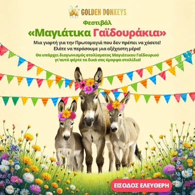 «Майские ослики» на ферме Golden Donkeys Праздник, наполненный музыкой, танцами, едой и множеством развлечений для всей семьи В этот день состоится конкурс украшения майского ослика, поэтому приноси