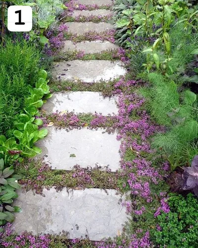 Почвопокровные, по которым можно ходить 💛 1. Тимьян образует отличнейший коврик для солнечных участков. Посадите тимьян между камней, образующих дорожку, и наслаждайтесь его свежим ароматом всякий р