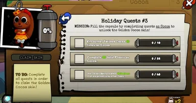 🌼Новые квесты! Квесты на Какао🍫 — Встрети 10 раз Твистед Какао играя за Какао — Пройдите 35 этажей играя за Какао — Используйте 40 раз активную способность Како, что бы ваши союзник подобирали их