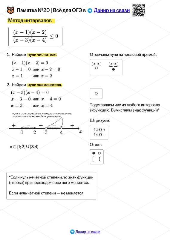 Памятка по новым неравенствам в №20. Метод интервалов Она поможет вам быстрее научиться их решать. На ближайших роликах покажу как ей пользоваться Ребятам на курсе я всё уже показывал еще до обновле