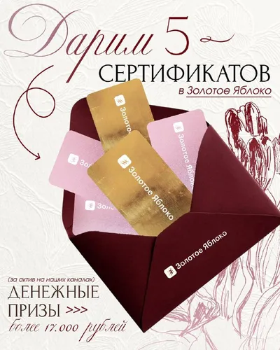 Дарим 5 сертификатов ЗОЛОТОЕ ЯБЛОКО и 3 денежных приза за АКТИВ! Условия участия 1. Подписаться на каналы: darinalanguage / VALERIA K / Вещаю про бьюти / Your bestie’s diary / Питерская снобка /