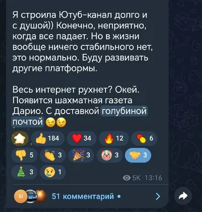 Если Телеграм тоже рухнет окончательно, пойдем куда-нибудь еще💃 Идея первична, а способы найдутся. Тех, кто хочет заниматься шахматами, ничего не остановит 😉 * на фото пост конца 2024 года, моя то