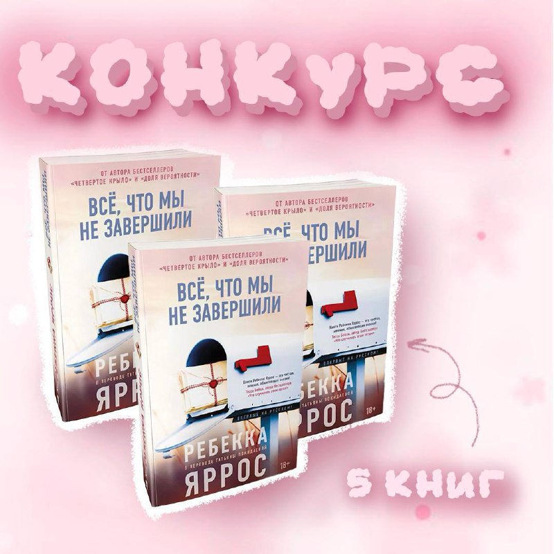 🩷Дарим новинки Ребекки Яррос🩷 5 победителей получат по экземпляру «Всё, что мы не завершили» от издательства Азбука! Как принять участие? 1. Подписаться: @daryanemk @azbuka_newpage 2. Нажать на