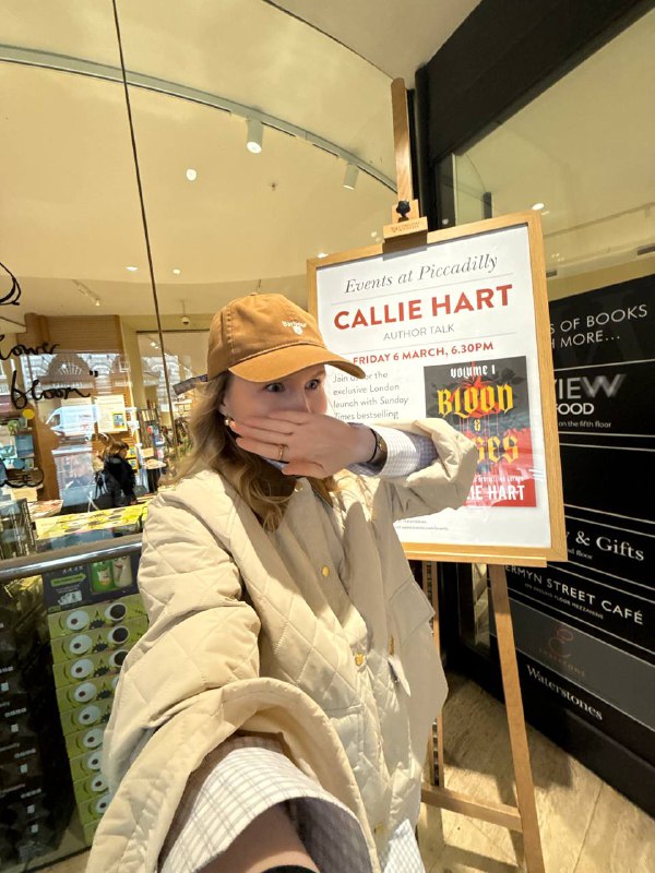 🩷🪄 Я СЕГОДНЯ УВИЖУ КАЛЛИ ХАРТ! Уж не думала, что сегодня утро в Лондоне начнется вот так)) Совершенно случайно зашла в книжный, увидела афишу презентации Калли Харт, подумала, что ну билетов точ