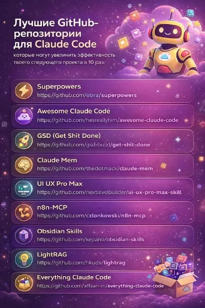 🌟 Лучшие GitHub-репозитории для Claude Code, которые могут увеличить эффективность твоего следующего проекта: 1. Superpowers https://github.com/obra/superpowers → Набор “супер-скиллов” для Claud