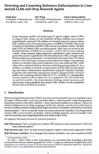 Detecting and Correcting Reference Hallucinations in Commercial LLMs and Deep Research Agents Read @datascienceiot