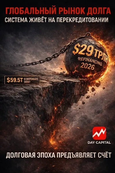 🏦 ГЛОБАЛЬНЫЙ РЫНОК ДОЛГА: СИСТЕМА ЖИВЁТ НА ПЕРЕКРЕДИТОВАНИИ Государства и компании заняли на рынках примерно ~ 27 трлн$ в 2025 году и около 29 трлн$ ожидается в 2026 году. Но главное здесь другое.