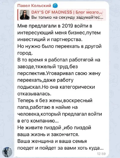 Подписчик отказался от перспективного бизнеса, лишь бы не расстраивать свою любимку переездом. Боялся потерять семью. В итоге остался и без бизнеса, и без семьи и, конечно же, без самой любимки. Зако