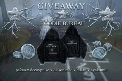 📣 GIVEAWAY 📣 10 ПРИЗОВЫХ МЕСТ 1. Hoodie "Bureau" 2. Telegram Premium ⭐️ 3. 100 stars ⭐️ 4. 100 stars ⭐️ 5. Скидка 10% 6. Скидка 10% 7. Скидка 10% 8. Скидка 10% 9. Скидка 10% 10. Скидка 10% 🔎 УСЛ