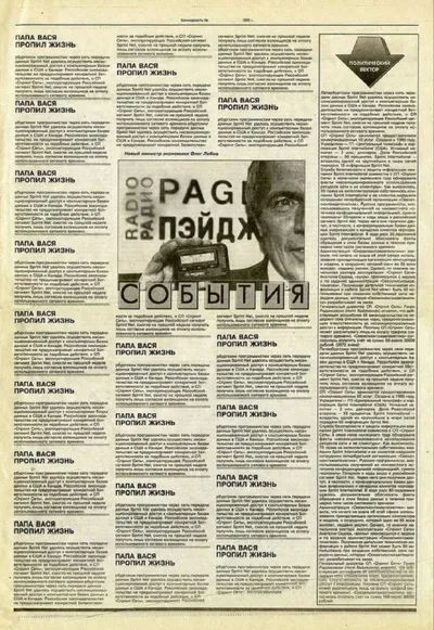 Легендарный номер «Коммерсанта» 1993 года, где на развороте вместо положенных материалов был напечатан текст-рыба, начинающийся с фразы «Папа Вася пропил жизнь». Часть тиража ушла в розничную продажу