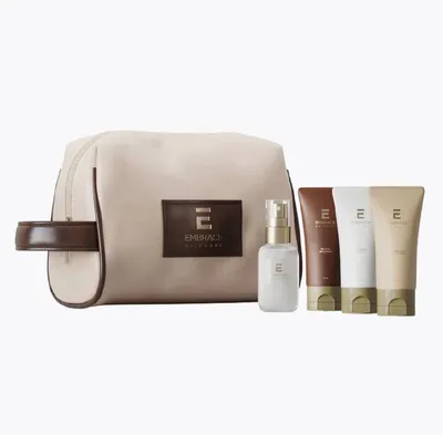 Завтра будут в наличии наборы в кожаной косметичке от итальянского бренда Embrace: 1.Embrace Voluminaire шампунь специально разработан для тех, кто стремится полностью контролировать жирность и себор