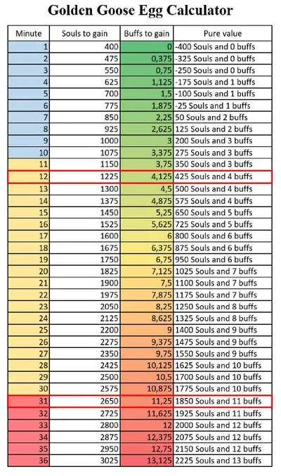 🤓 Минутка ПОЛЕЗНОЙ ИНФЫ Игрок под ником Mr-BAG провел расчеты, связанные с новым предметом (Golden Goose Egg), чтобы выяснить лучшие тайминги для ЕГО ПОТРЕБЛЕНИЯ. По итогам 12 и 31 минуты — самое в