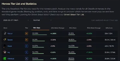 ☄️ НОВАЯ МЕТА После выхода балансного патча прошло пару дней, поэтому предлагаю глянуть как изменения повлияли на мету. 📈В ТОП 5 ЛУЧШИХ ГЕРОЕВ ВОШЛИ: 1.🥹Victor: 59.98% WR; 2.🥹Seven: 56.11% WR; 3