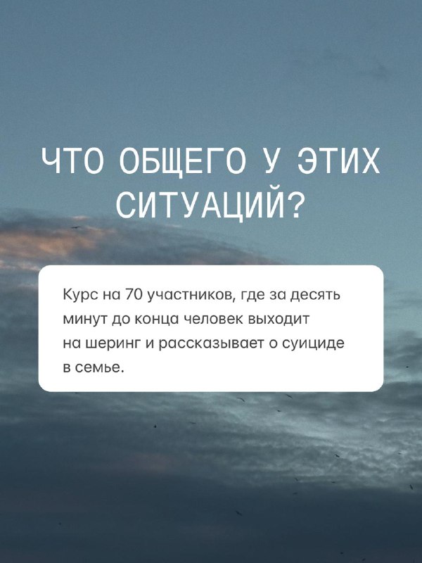 Эти ситуации объединяет наличие пространства, где одновременно находятся несколько людей, много разных историй, а также эмоций и напряжения. ⠀ И в какой-то момент в любом групповом пространстве почти