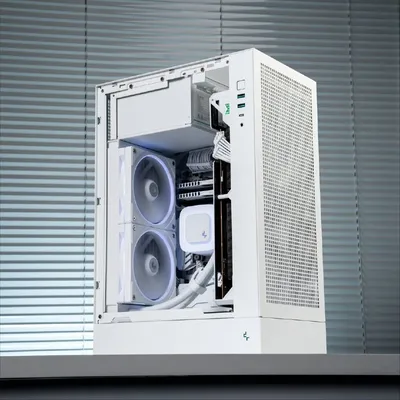 ✅ Корпус с революционным дизайном и предустановленной системой жидкостного охлаждения для высоких нагрузок — DeepCool CL6600 Он разделяет тепло и поток воздуха — это исключает перегрев и перекрестные