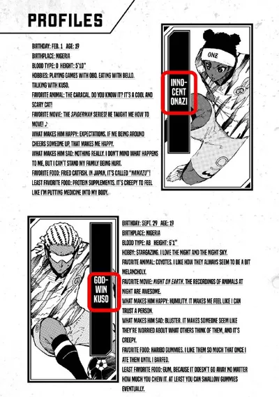 Официальный английский e-том Vol. 36 недавно вышел. Их имена действительно Инносент Онази и Годвин Кусо. Это распространено в Нигерии, особенно в южных и восточных регионах. • Инносент Онази ДАТА РОЖ