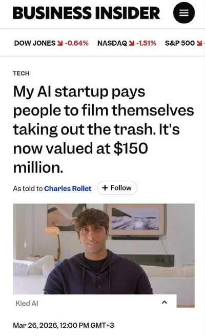22-летний стартапер создал ИИ-сервис, который платит юзерам за фото и видео бытовых действий — как они выносят мусор, получают почту или сталкиваются с ямой на дороге. Все данные затем продают компани