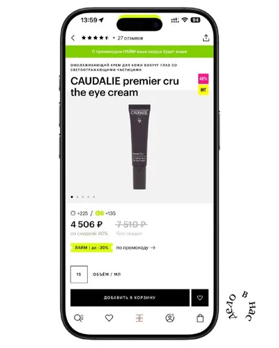 друзья, это лучшая находка последних месяцев! крем для глаз (и губ) от caudalie с металлическим аппликатором🩷 текстура средства - взбитая, легкая. идеально наносится и впитывается. металлический