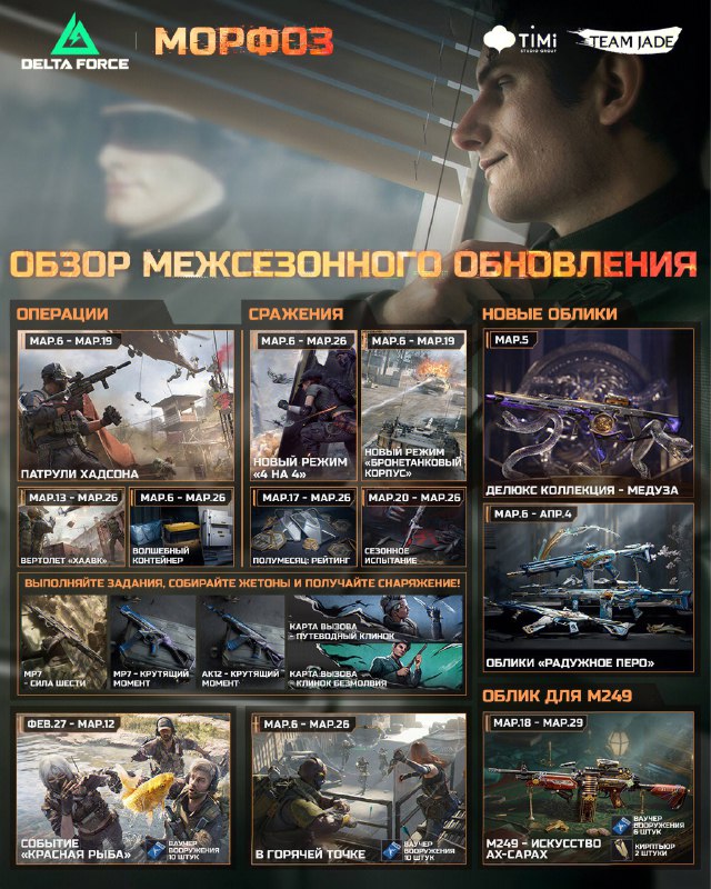Оперативники, давайте быстро взглянем на межсезонное обновление 😎😎😎😎😎 ⚡️ Врывайтесь в новый режим 4 на 4 — динамичные сражения гарантированы! 🔍 Хотите — участвуйте в испытаниях «Манёвры Хадсона