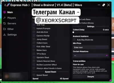 🤩Лутший скрипт на Steal a brainrot ‼️ ⭐️Функции: Brainrot spawner, no ban, anti hit, instant steal, esp, bypass anti cheat, tp to base и +100 🔒Ключ:❌ Не рейдж байт На 50 лайков найду норм скрипт на