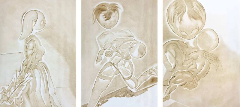 #безкомментариев Арина Франк. Триптих: невеста, куда-то, дым. 2023. Холст, масло, 130х167 см (каждая). Shift Gallery.