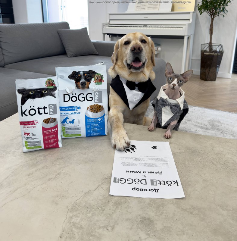 Все любят вкусно покушать😁 Любовь или еда? Дени выбрал... еду 😂 Но Мэни не обижается, у него тоже свой корм имеется) Спойлер: оба остались довольны, потому что Kott Pro и Dogg Pro реально вкусные