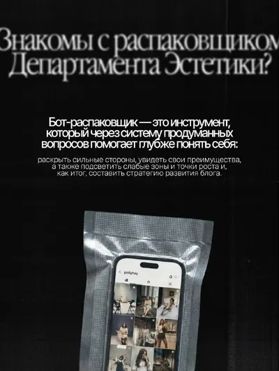 Бот-распаковщик от Департамента эстетики 🤍 Дорогие, мы всегда говорим о том, что первый шаг в работе над своим аккаунтом или брендом — распаковка. Потому что просто реализация всех подряд трендов и