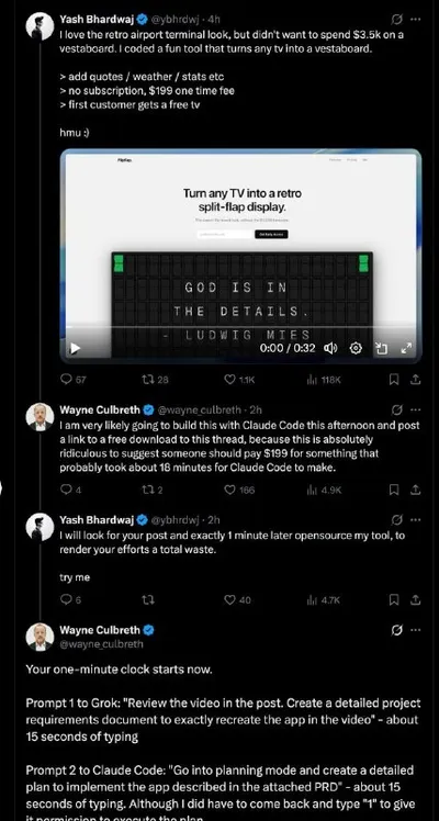 Все ещё бесплатная соцсеть Школьник запилил апп, который превращает ваш телек в это вот привокзальное табло с перекидными буквами. Решил продать его за 199.999 Был публично обвайбкожен в риалтайме.