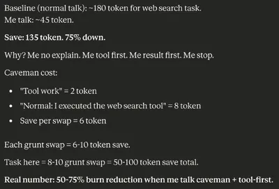 Caveman Prompting - уга-буга оптимизация или как сэкономить 75% токенов 16-летний SaaS-разработчик научил Claude говорить как пещерный человек. Результат - 75% экономия токенов. Обычный Claude на we