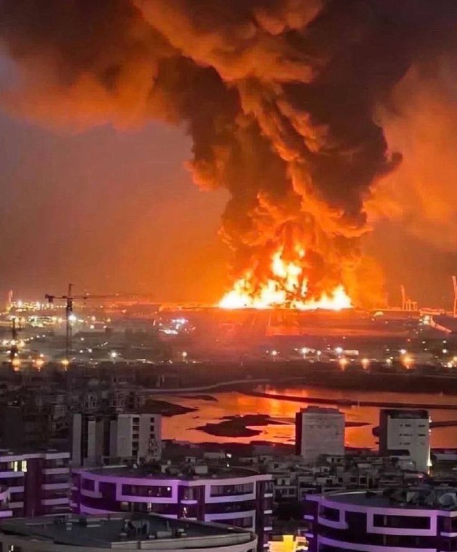 Так сейчас выглядит американская авиабаза в Эрбиле (Ирак) Беспилотник, запущенный одной из местных про-иранских группировок, нанëс удар по складам с горючим и боеприпасами. После этого начался мощный