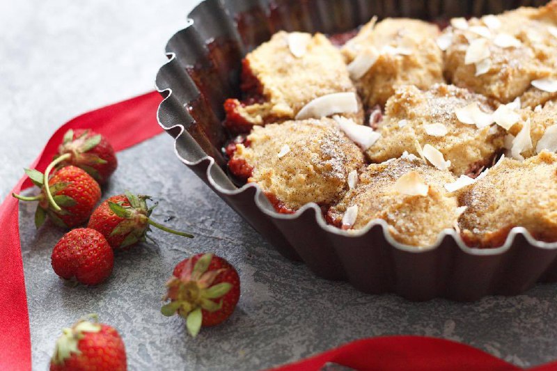 Самый простой пирог, который осилит любой мужчина в подарок даме на 8 марта Готовим кобблер – тесто не сыпем, как в крамбле, крошкой, а накладываем ложкой. Ягоды можно взять любые. Вариант обезжире