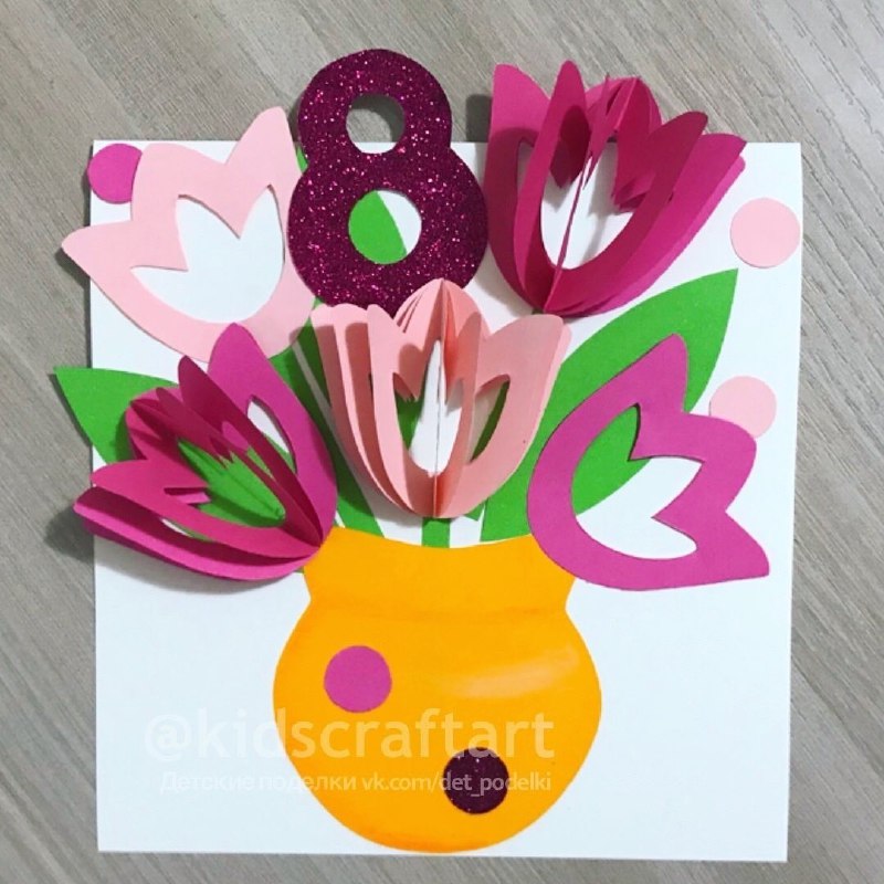 Детские поделки открытки на День 8 Марта - открытка «Тюльпаны» 🌷 🦸♂ Супердети | Подписаться
