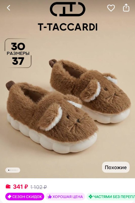 T.TACCARDI Тапочки домашние мягкие теплые с ушками https://www.wildberries.ru/catalog/728465424/detail.aspx