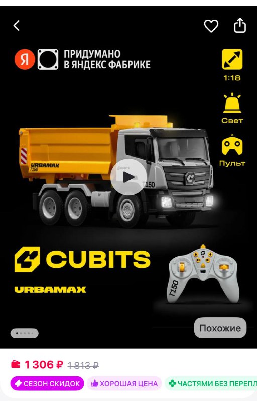 CUBITS Машинка-грузовик на радиоуправлении Urbamax T150 https://www.wildberries.ru/catalog/283964691/detail.aspx?size=435184033