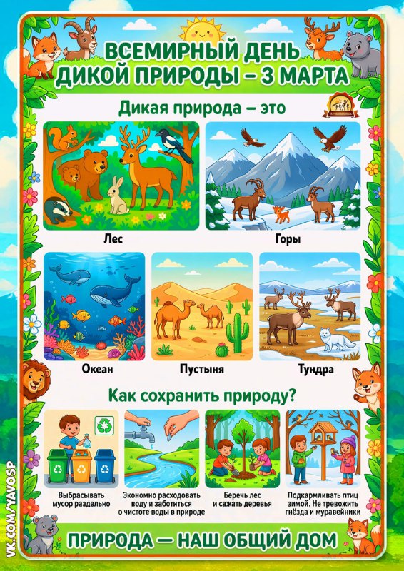 3 марта – Всемирный день дикой природы Праздник отмечается с 2013 года и направлен на распространение информации о необходимости беречь и защищать природу нашей планеты. Поддержите канал подпиской в