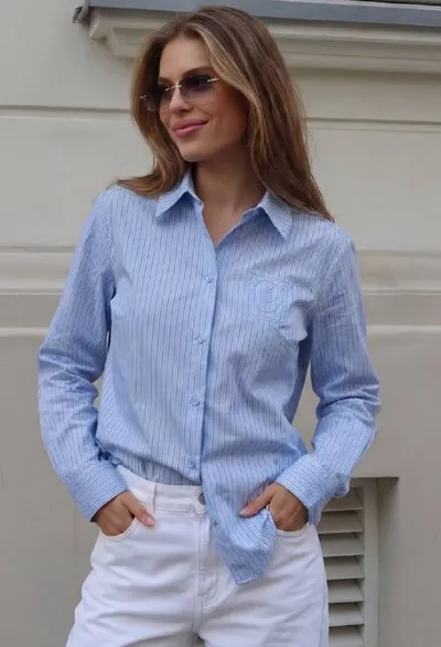 🩵🩵🩵🩵🩵🩵🩵🩵 ВСТРЕЧАЙТЕ 🤩 ЕЩЁ ОДНО ПОПОЛНЕНИЕ В КОЛЛЕКЦИИ РУБАШЕК 🌿 Небесно-голубая с вышивкой «Цветок в рамке». Рубашка которая делает образ «дорогим». Мягкая, лёгкая, с идеальной вертикальной