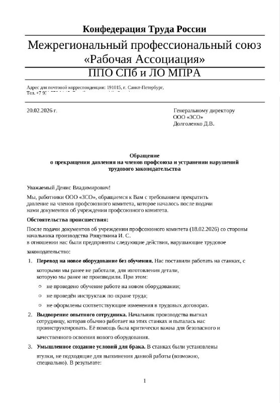 ❗️«Уберем стулья и накажем рублем»: руководство петербургского завода объявило войну новому профсоюзу В Санкт-Петербурге на территории «Завода специальной оснастки» развернулось жесткое противостояни