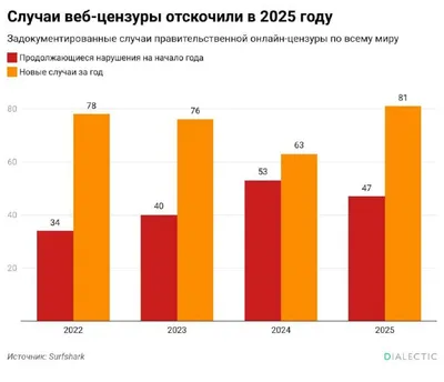 Эксперты фиксируют рост интернет-цензуры в мире За прошедший год правительства двадцати одной страны инициировали 81 новую блокировку доступа к интернету, затронув жизни более 2,5 миллиардов человек