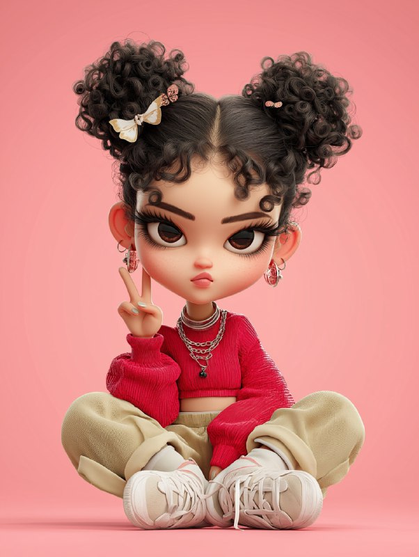 Гиперреалистичный преувеличенный стиль чиби, игривая молодая белая девушка с черными глазами, огромными выразительными глазами с длинными драматическими ресницами, пухлыми блестящими губами, черными в