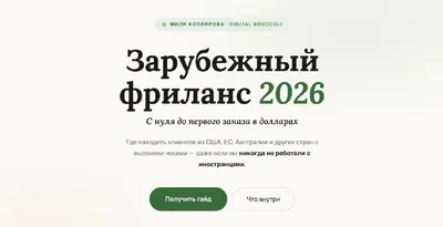 Обновила лендинг гайда «Зарубежный фриланс 2026» — теперь он очень красивый и на нем удобнее читать инфу о гайде и рассчитать свой желаемый доход на зарубежном рынке💚 Напоминаю, что он здесь: https: