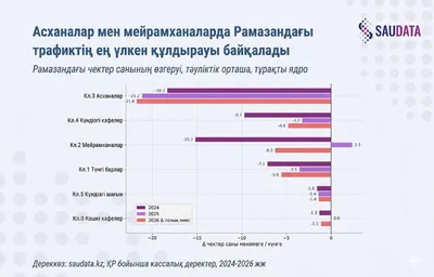 Рамадан бьёт не по барам — по столовым Интуиция подсказывает: Рамадан → меньше алкоголя → сильнее всего страдают бары. Фискальные данные кассовых транзакций ОФД компании Saudata по всему Казахстану